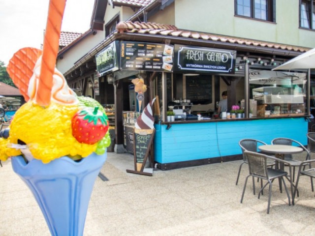 Rejs Caffe - obok Restauracji Rejs. W ofercie: włoska kawa, Lody Fresh Gelato - każdy smak wymyślony na miejscu, ciasta domowego wypieku, chrupiące gofry z rożnego rodzaju posypkami, sosami oraz świeżymi owocami i bitą śmietaną.